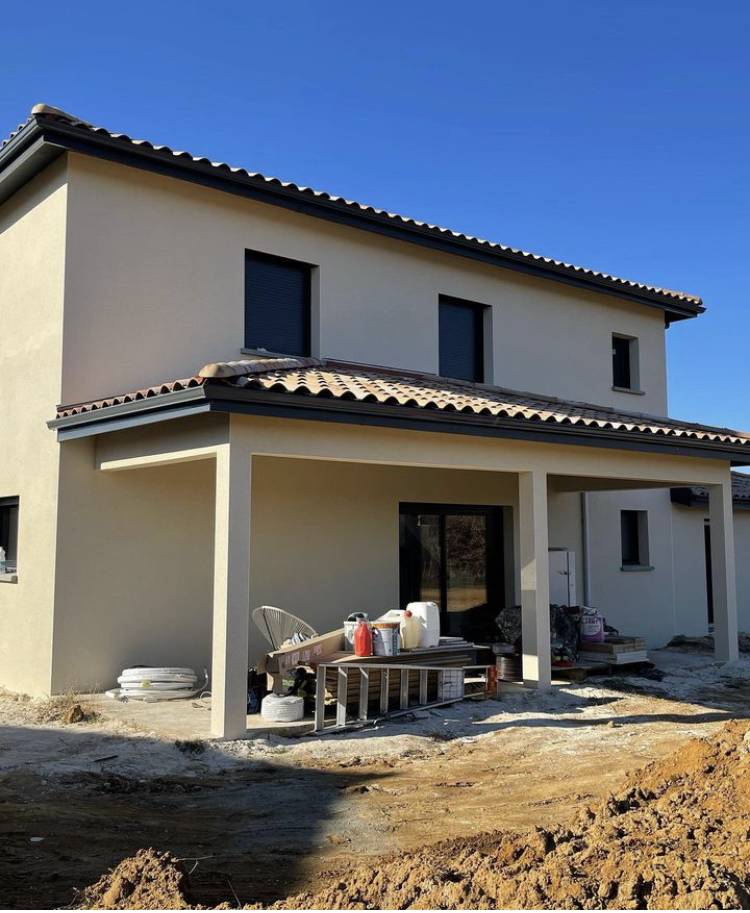 Le ravalement de façade sur une maison neuve en finition grattée, couleur 20 écru de notre partenaire Vpi Vicat, implique plusieurs étapes importantes pour obtenir un résultat final de qualité.